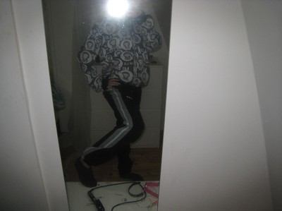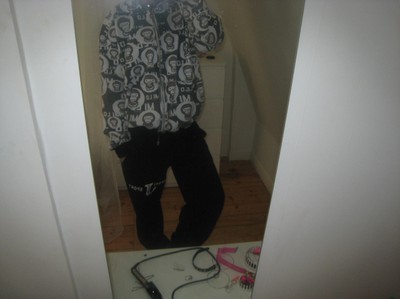 Mjukisbyxor, tjocktröja och ett par stickade tofflor som mormor gjort, hihi