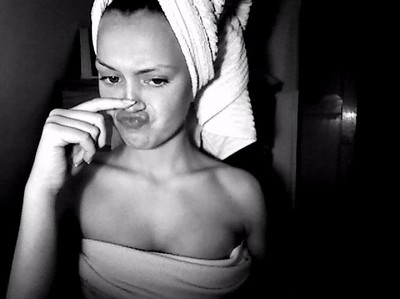 Det jag gör på bilden kan vara min nya omedvetna tvångstanke..Jag måste sitta och lukta på..ah jag vetifan vad egentligen? Men fan vad benig jag är…det har jag inte ens tänkt på, fan vad äckligt