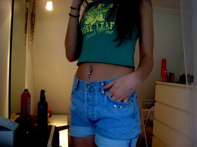 Har du navelpiercing både uppe och nere i naveln? (eeh, min syn är kasss)