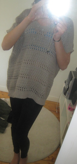 Hemma från second hand rundan, haha. Vi har precis grillat korv! gottt vare! Hittade iaf en grej. En stickad tröja som är genomskinlig men jag ska ha en bustier under så det blir nog bra! 25kr!