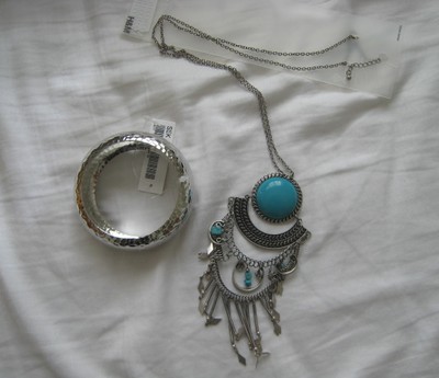 Fan det är sjukt fint väder så det är nästan omöjligt att vara på dåligt humör så jag tog mig en mini-shoppingrunda idag på rasten! Fick ett och annat KAP så att säga. Armbandet kostade 30kr och halsbandet 70kr. Den underbara klänningen kostade 100kr, helt otroligt! Allt från HM!