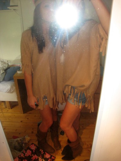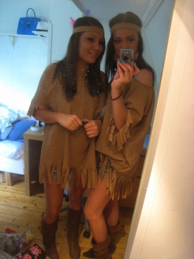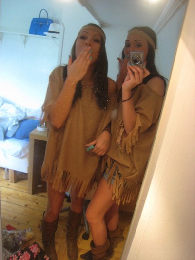 Kolla vad fina vi är! Vi har stressat somfan med att sy våra kläder! Dock syns inte våra fjädrar som vi har kämpat med för att få på! Men det blev skitbra tillslut! Vi är indianer om ni inte ser det! NU ska vi iväg på skiva, först blir det middag sen blir det RÖJJJJJJJ! Pusssss