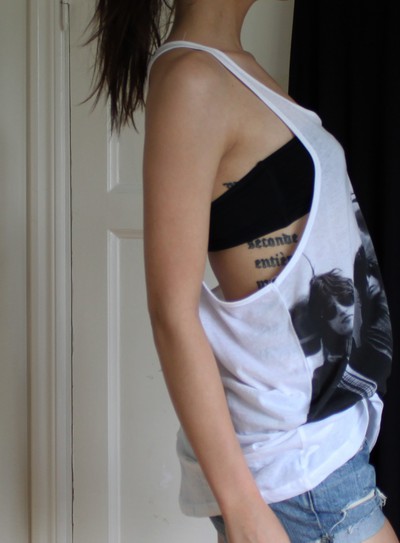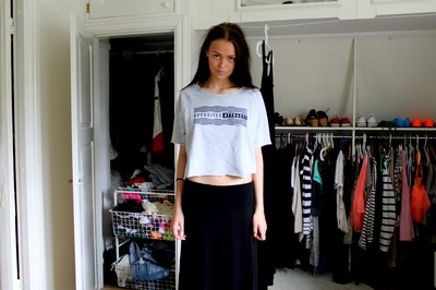 Jag funderar på att lämna tillbaka långkjolen för jag ser förjävlig ut i midjehöga grejer:/ Det är drf jag inte har den i midjan om ni inte fattade det.