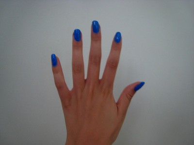 Målar naglarna. Både händer och fötter. Älskar den blåa färgen!