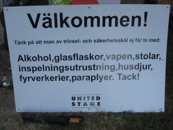 Man fick inte ta bilder så jag fick ta en liten smygbild före konserten. Den andra bilden hade vi lite kul åt. Den är ju sjuk i huvet. Haha man fick inte ha med sig vapen, husdjur och fyrverkerier..VA? ehhh…
