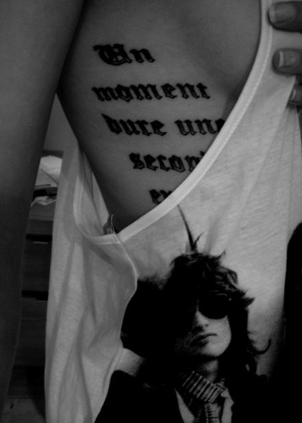 Fick flera förfrågningar om min tatuering och jag svarar på dom här. Den ena var hur den ser ut, tada! Här har du två bilder! Och vad det står. Det är samma text som jag har skrivit på min header!
