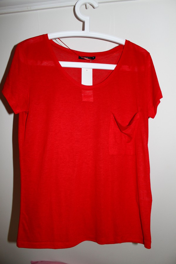 Kom precis. Hittade inte mycket till min besvikelse. Men detta sötsök fick följa med mig hem. En slapp röd lite halvtransparent tisha från lindex.