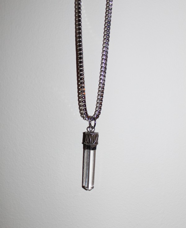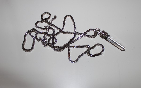 Mamma hittade kristallen (som är en pendel) och jag gjorde den till ett halsband istället. Vackert!