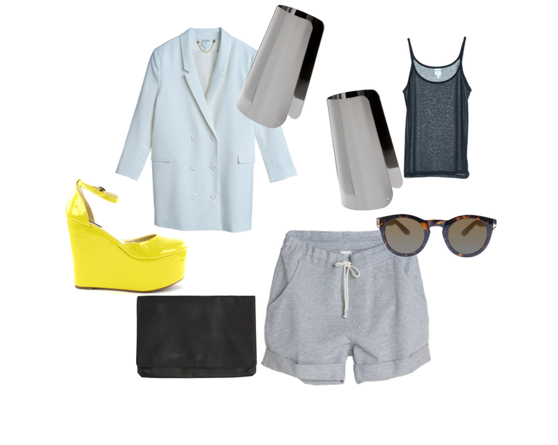 Kavaj, linne, solisar, shorts och clutch – Monki, Armband – Asos, Skor – Nellytrend