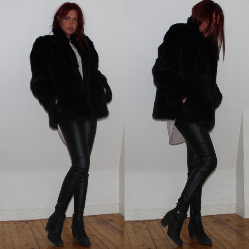 Min nya älskade älskade pälsjacka! Den tillhörde alltså min mormors mamma och den gick ner till knäna så jag sydde upp den. Det är en skunkpäls. Och nej den luktar inte gammal rumpa. Välkommen till garderoben!