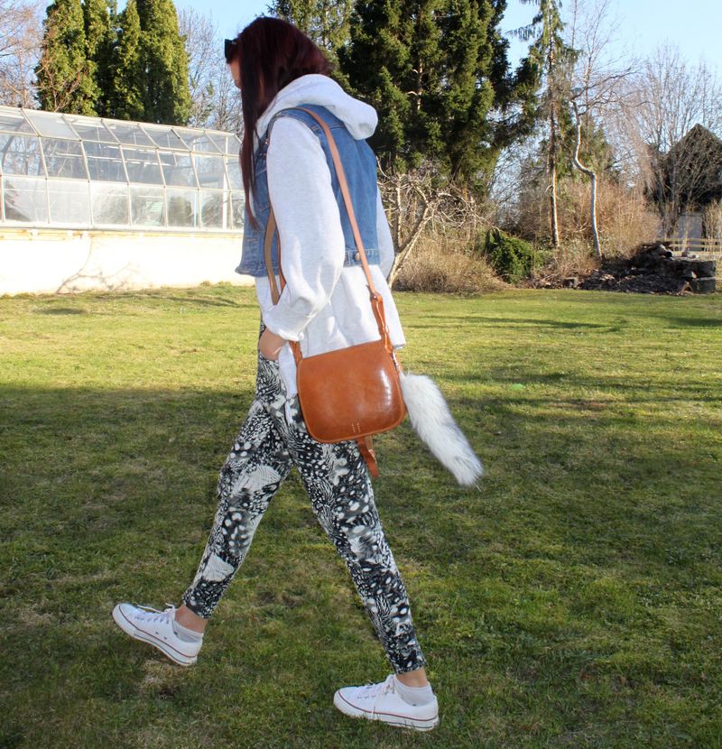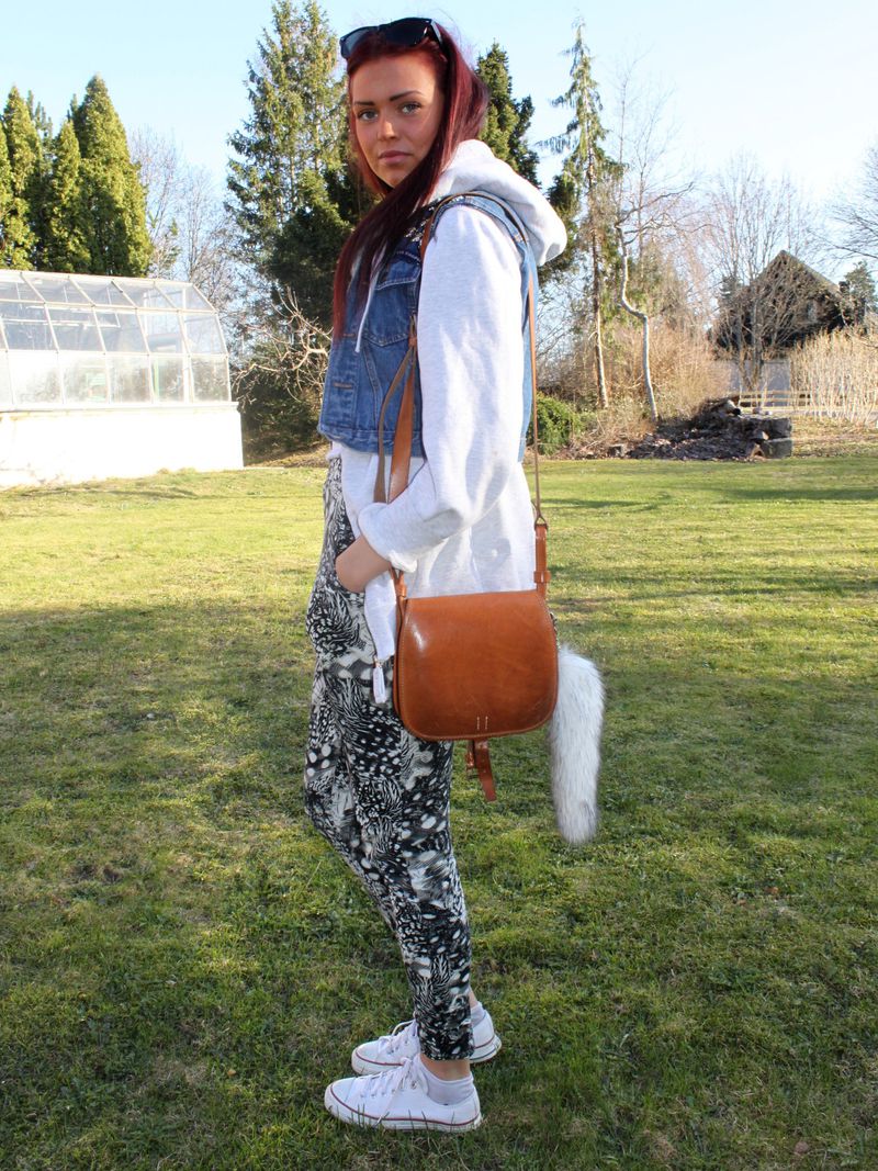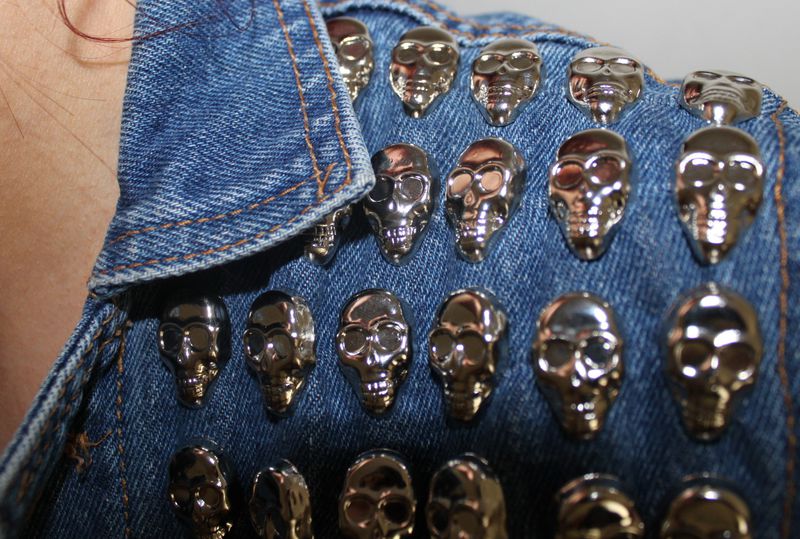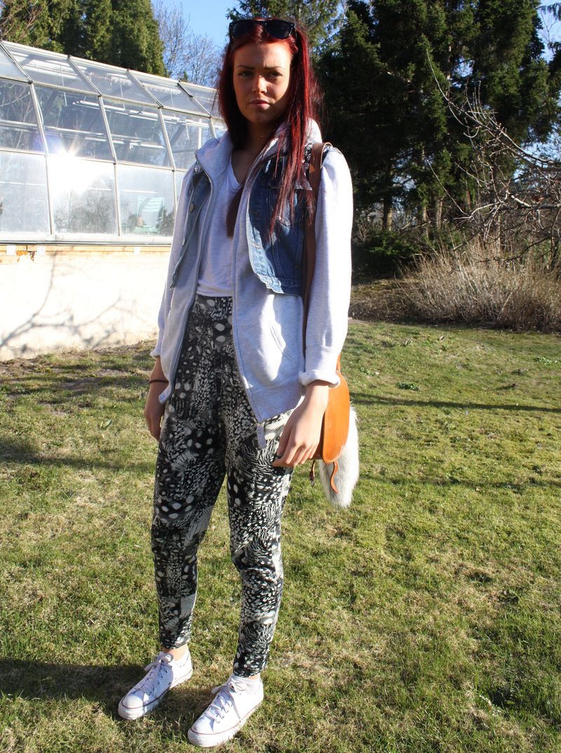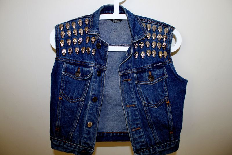 Detta var min jeansjacka när jag var bebis. Klippte av ärmarna  som faktiskt bara gick till mina armbågar, haha. Satte på några nitar igår och såhär blev det. Ändå najs. Fattar inte hur jag ens får på mig den dock..