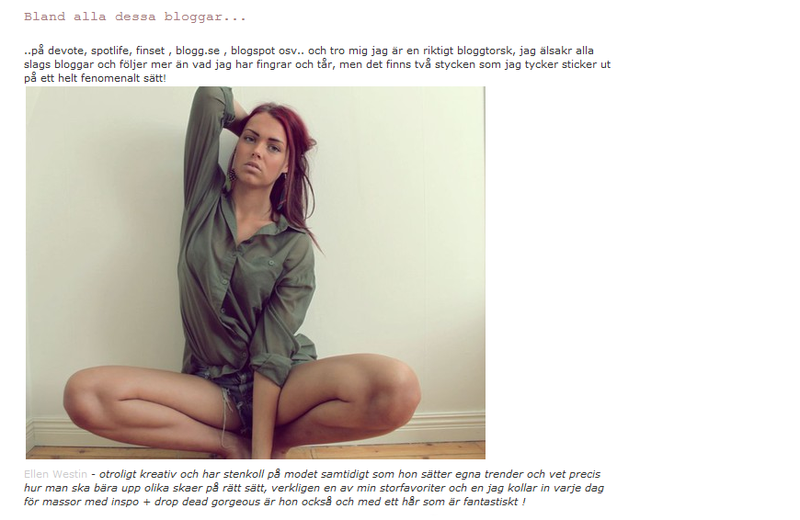 Möttes av detta från en läsare som länkade att hon hade tipsat om mig i sin blogg. Så himla gulligt! Om ni länkar/tipsar om mig i era bloggar så får ni säga det till mig, blir så himla rörd! Denna otroligt fina text är skriven av http://kimbas.blogg.se. Tack tack tack!