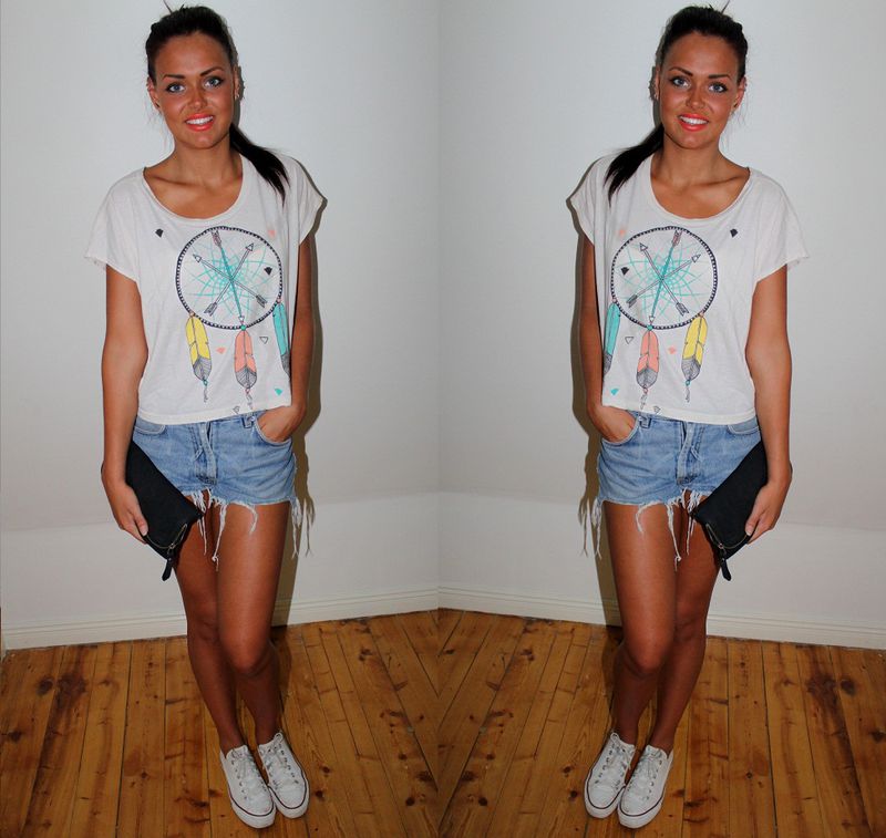 Ikväll ska jag till collage! Jag har på mig min nya tischa (som jag köpte igår) från urban outfitters och shorts är cut offs samt converse. Nu måste jag dra. Tja!