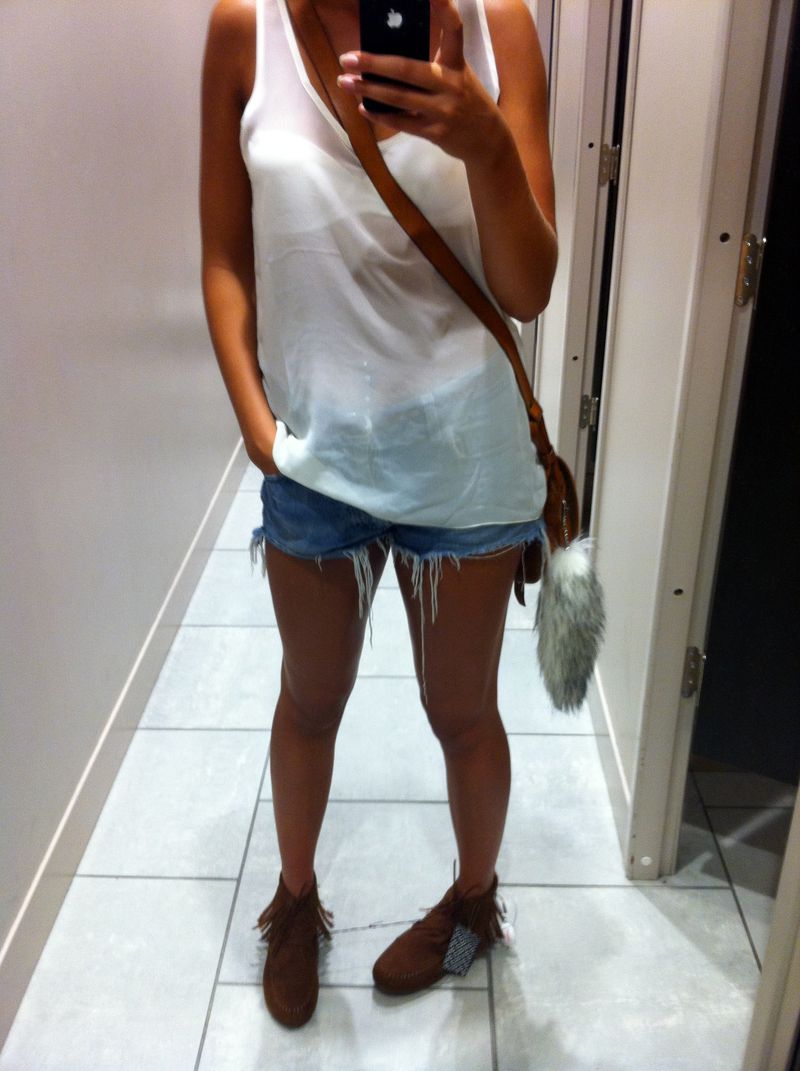 Idag har jag och mitt hjärta varit i täbban och detta fick jag med mig hem. Ett neongult linne och ett par minnetonkasfejk kan man säga. Från HM. Killen i kassan glömde larma av dom så jag är fett irriterad! Hah. Hittade även ett par boots som ni kommer att få se en annan dag! Det är nämligen så att jag måste ha några inlägg när jag är borta! Åker till öregrund imorn bitti med käraste och blir borta några dagar, uppemot en vecka kanske. Vi får se. Ska bli skönt i alla fall! Kommer iaf upp 2 inlägg per dag!