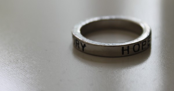 Emma hittade två ringar när vi städade och så gav hon en av dom till mig. Gulligt va? Det står hope, glory, luck på min.