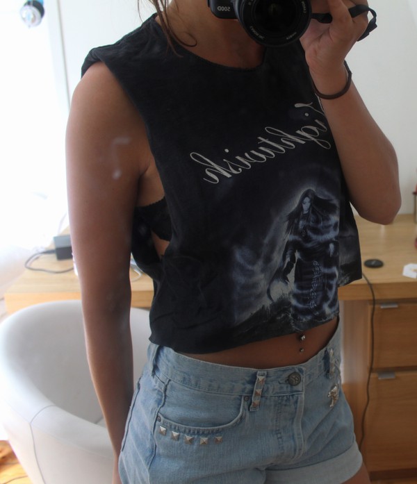 En Nightwish tröja. Klippte mycket somfan denna gången eftersom den var alldeles för stor från början. Strl L…