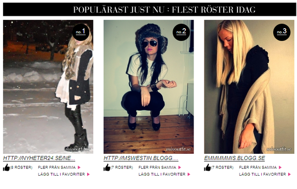 YEEEEY! Om ni inte har något bättre för er så kan ni ju alltid gå in på http://www.minoutfit.se/ och rösta på mig. Då skulle jag bli väldigt glad.